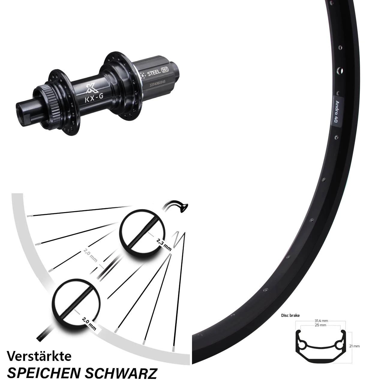 Ryde Andra 40 Disc Hinterrad 27,5 Zoll mit KX-GS schwarz 12×142 mm Centerlock Nabe mit verstĂ€rkten Speichen