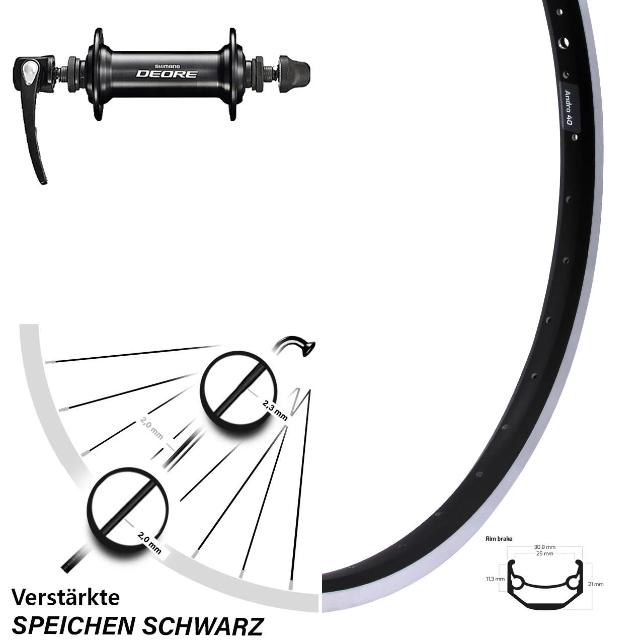 Technische Daten Vorderrad Ryde Andra 40 Felgenbremse schwarz mit Nabe Shimano Deore HB-T610 schwarz