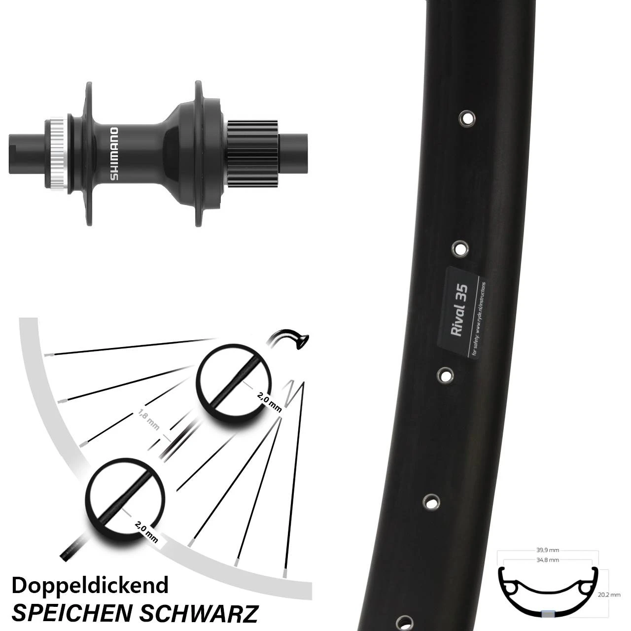 - Ryde Rival 35 Hinterrad 27,5+ Zoll mit Shimano FH-MT410 Boost Nabe Microspline