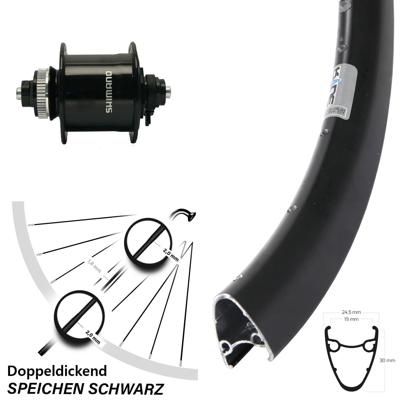 - Vorderrad 28 Zoll, 29 Zoll Ryde Dutch 19 schwarz mit Nabendynamo Shimano DH-UR700 schwarz