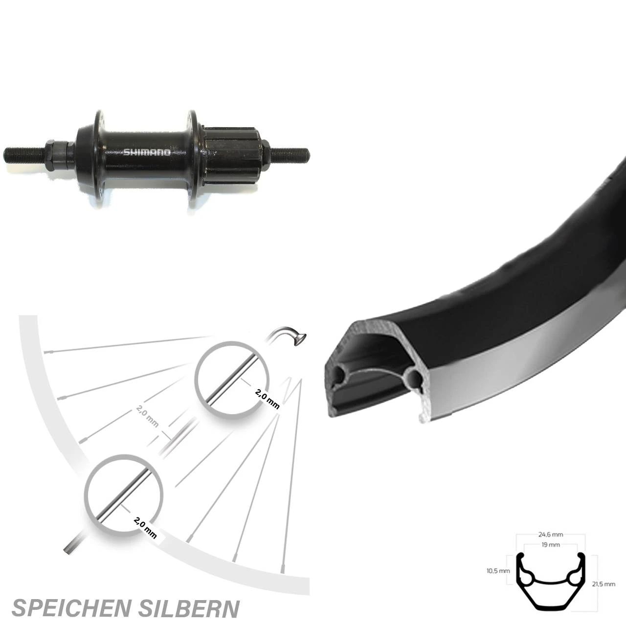 - Felge Maße: Höhe 21,5 mm / Breite 24,6 mm