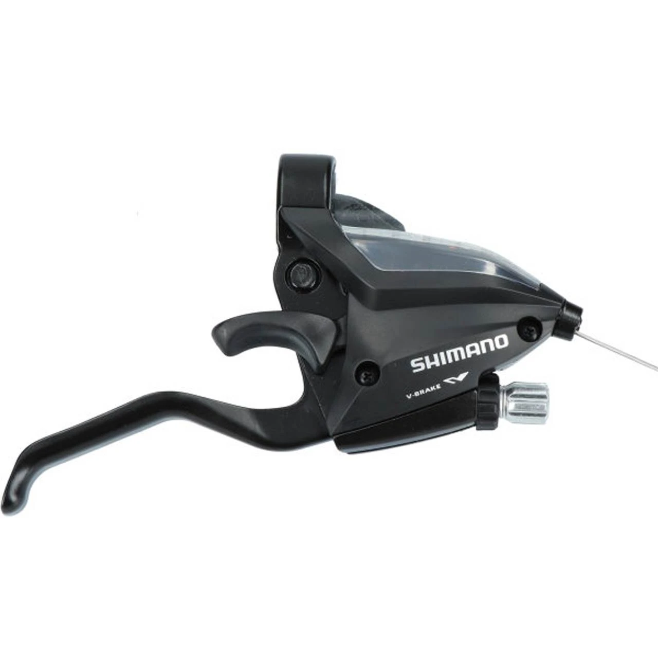 Der 3 x 7-fach ST-EF500-2 Schalt- und Bremshebel von Shimano besteht aus Aluminium und verfügt über eine optische Ganganzeige. Er ist nur zu Shimanoartikeln kompatibel. Er hat eine Hebelgröße von 2 Fingern, eine 22,2 mm Lenkerklemmung und wird bei V-Brakes und Cantileverbremsen verwendet. Der Hebel wird, mit einem passenden Innenzug, in schwarz geliefert.