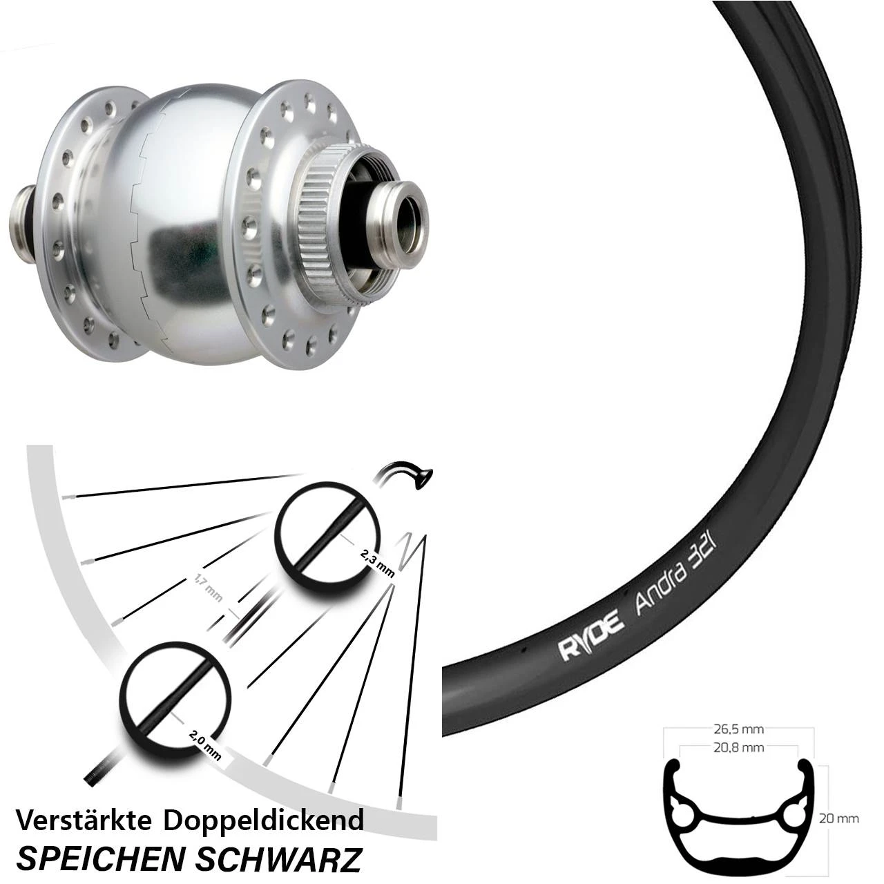 - Vorderrad 28 Zoll, 29 Zoll Ryde Andra 321 schwarz mit Nabendynamo SON 28 silbern