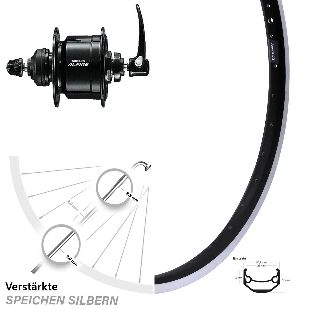 Vorderes Rad Ryde Andra 40 26 Zoll Nabendynamo Shimano Alfine mit verstÀrkten Speichen