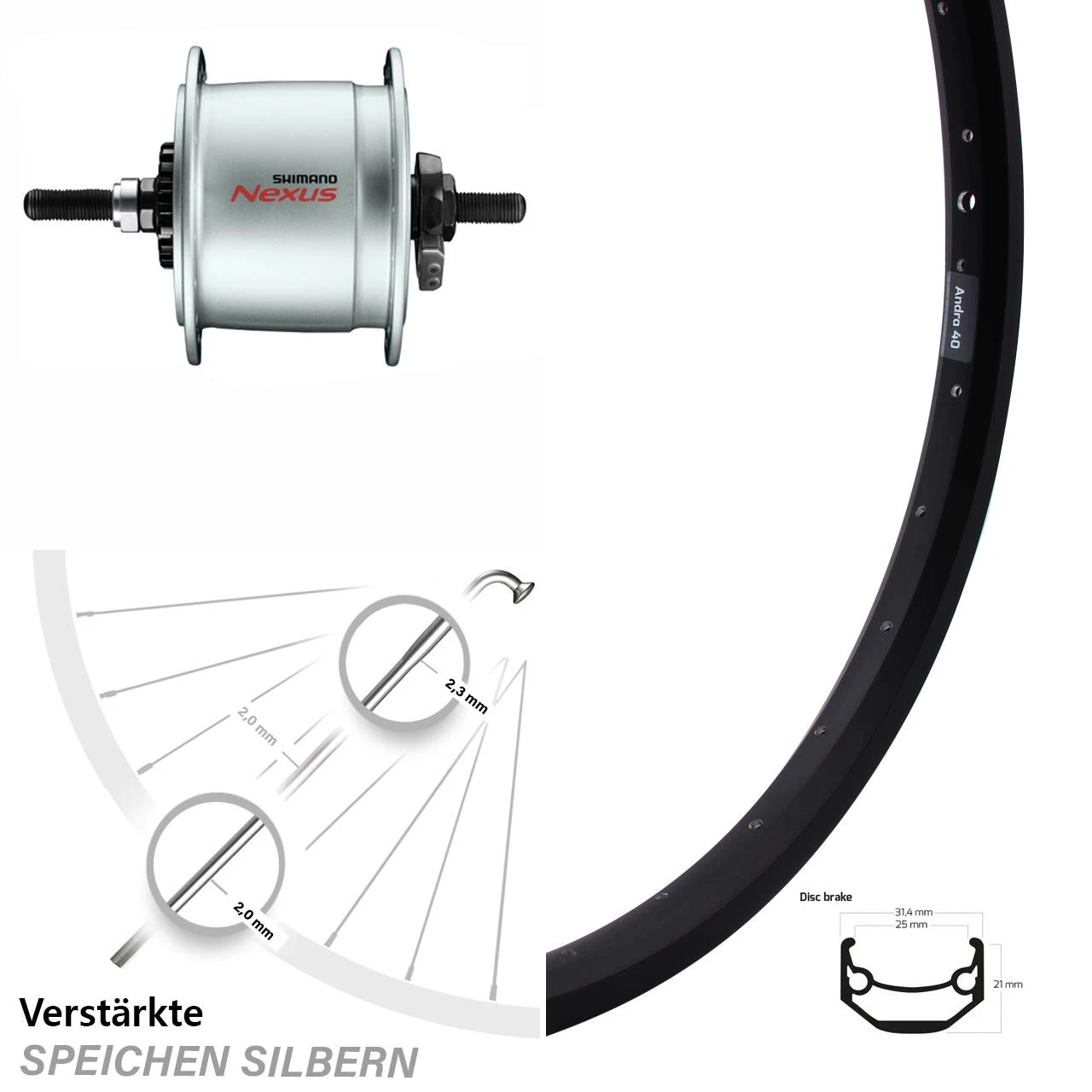Produktbeschreibung Vorderrad 20 Zoll Shimano Nabendynamo für Rollenbremse DH-C6000 Ryde Andra 40