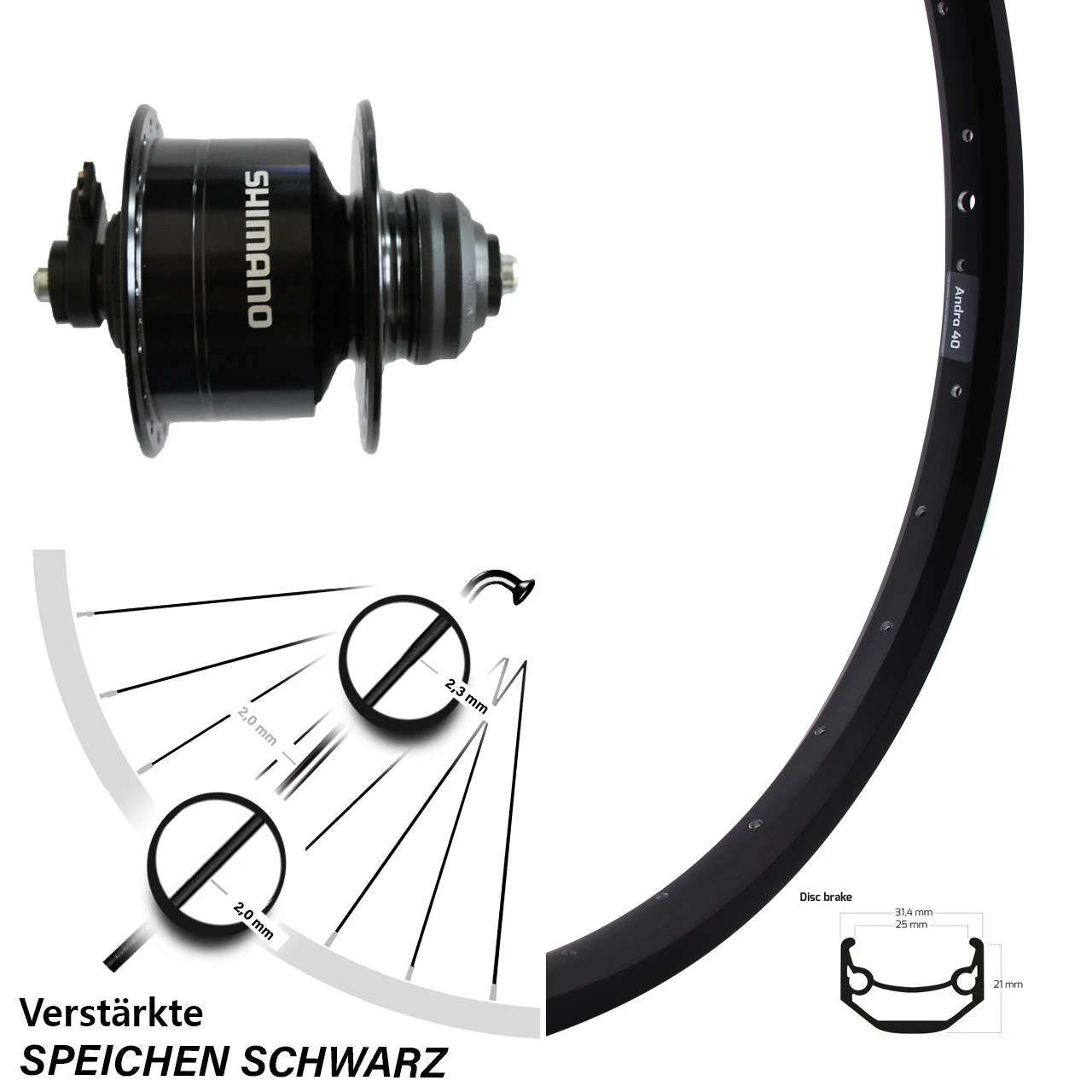 Technische Daten vorderes Laufrad Ryde Andra 40 Disc schwarz & Nabendynamo Shimano DH-3D72 schwarz