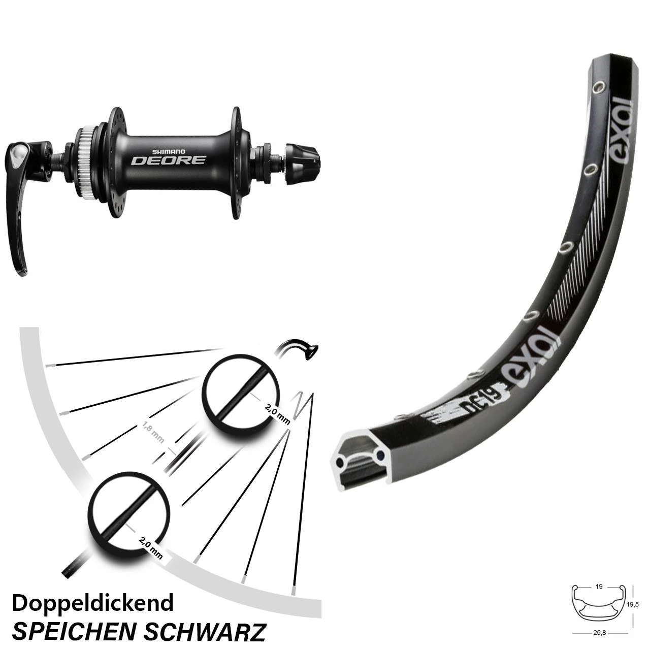 Produktbeschreibung Vorderrad 28 Zoll Exal DC 19 Deore Disc Centerlock