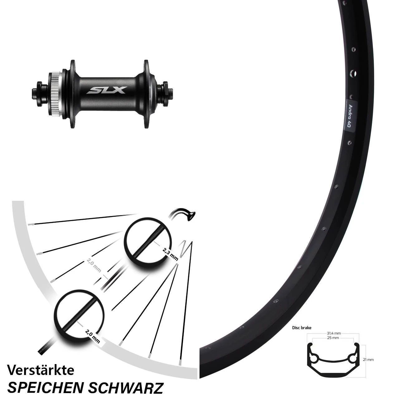 Technische Daten Vorderrad Ryde Andra 40 Disc schwarz mit Nabe Shimano SLX HB-M675 schwarz