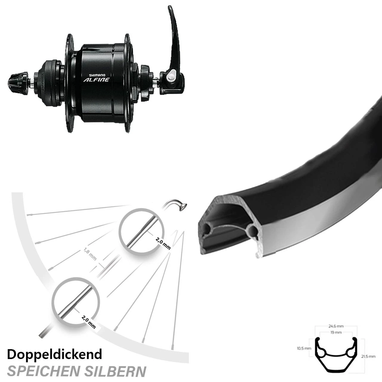 - Vorderrad 26 Zoll Ryde ZAC 2000 schwarz mit Nabendynamo Shimano Alfine DH-S501 schwarz
